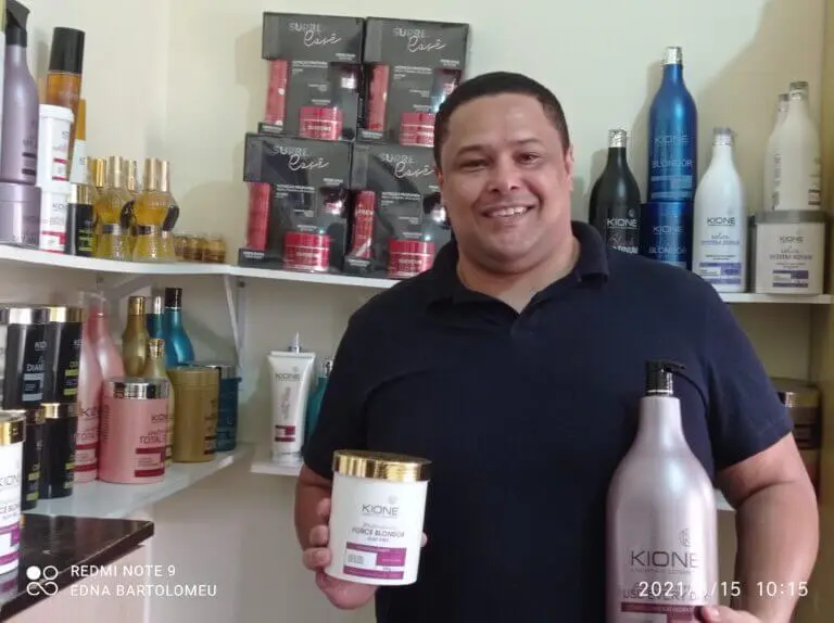 “Conheci a Kione por meio do site, eu procurava uma empresa para investir financeiramente e encontrei na marca tudo que eu precisava: produtos de qualidade, exclusividade de área e um suporte em todos os aspectos. Uma das principais vantagens em trabalhar com a Kione é que ela tem uma linha completa e me ajuda a proporcionar aos profissionais da beleza, todo o suporte que eles necessitam no salão, desde a coloração à linha de tratamento. A Kione mudou a minha vida e certamente mudará a sua!”